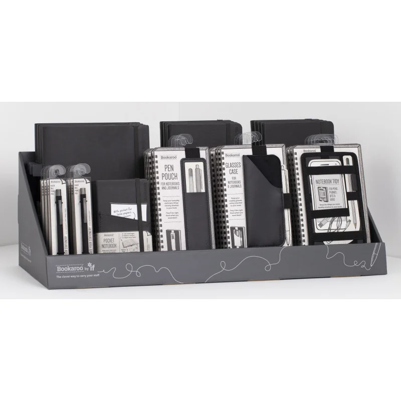 Display | Een display met superhandige en de bestverkopende Bookaroo-accessoires voor Bookaroo notitieboeken en pennen! Het display is 60cm breed.