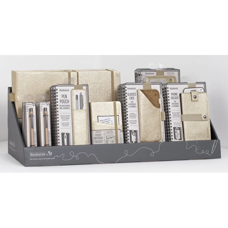 Display | Een display met superhandige en de bestverkopende Bookaroo-accessoires voor Bookaroo notitieboeken en pennen! Het display is 60cm breed.