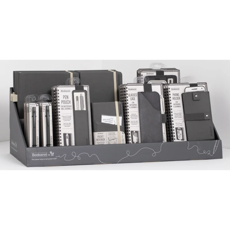 Display | Een display met superhandige en de bestverkopende Bookaroo-accessoires voor Bookaroo notitieboeken en pennen! Het display is 60cm breed.